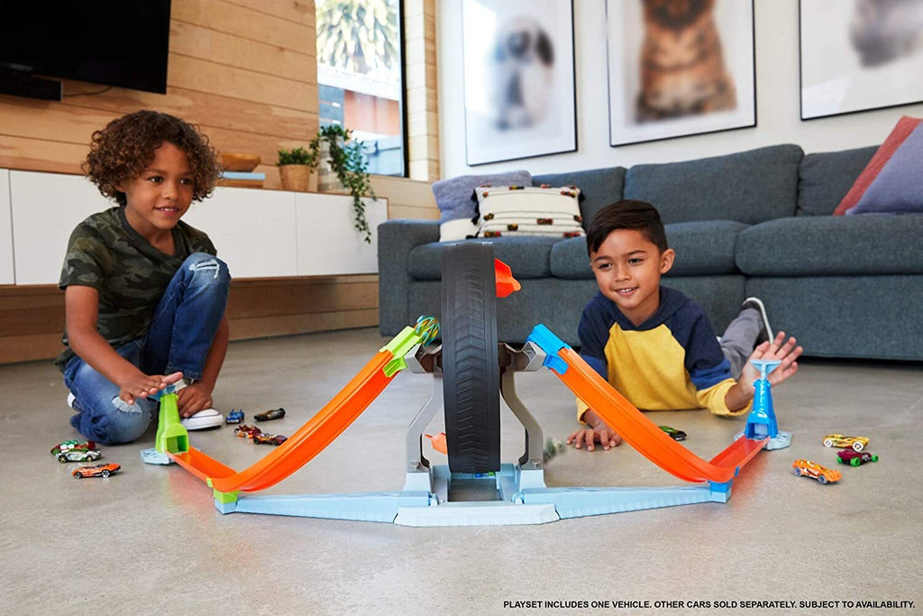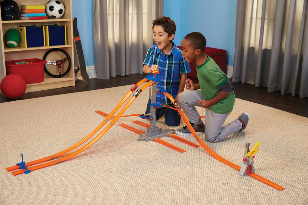 Compite a alta velocidad y descubre lo rápidos que los vehículos Hot Wheels pueden ser! Acelera con los vehículos Hot Wheels® por el giros extremos, las vueltas superrápidas de la rampa y mucho más en esta pista de 1,8 metros. Cuenta con tres configuraciones de pista diferentes para que corras una y otra vez.