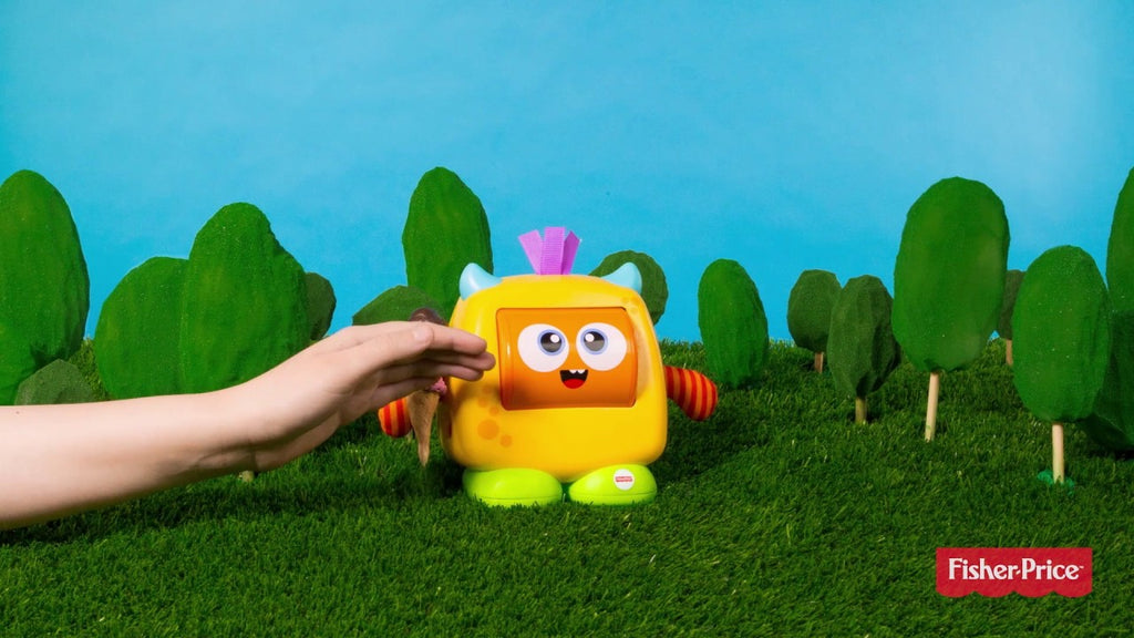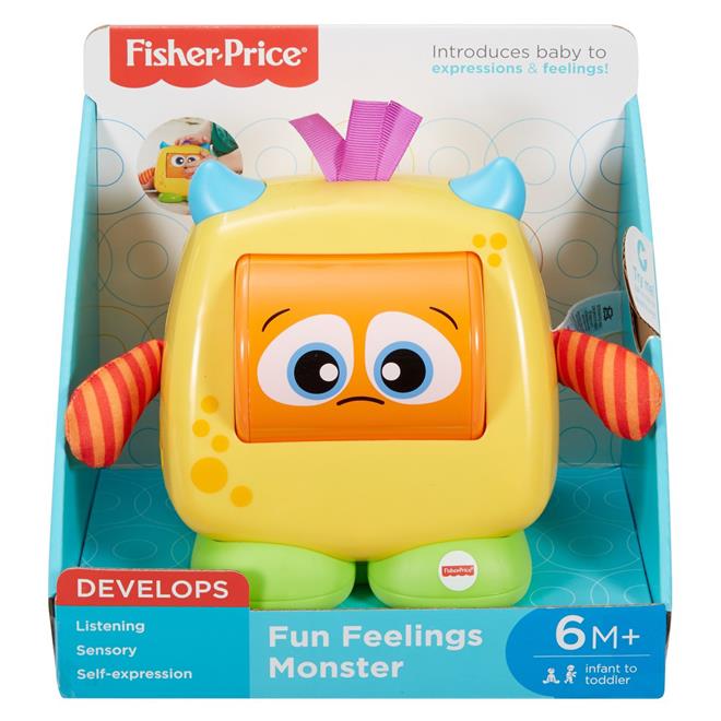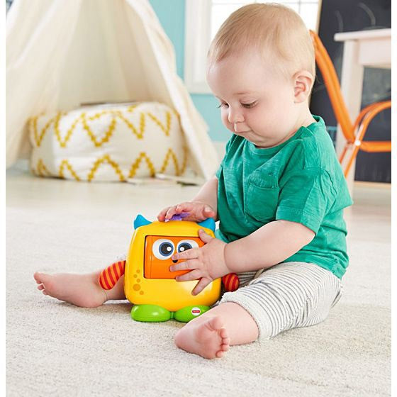 ¡Los monstruos también tienen sentimientos! A veces están felices, otras tristes y hasta pueden estar… ¡SORPRENDIDOS! Con un solo golpe, el bebé puede poner a girar el rodillo con caritas de monstruo – y observar cómo luce cada sentimiento y cómo suena. (¡El monstruo le enseña al bebé que los sentimientos pueden cambiar rápido!) Además, a tu pequeño le encantará cómo se siente este monstruo – ¡es divertido tocar su “cabello” de listón texturizado y sus suaves y flexibles brazos!