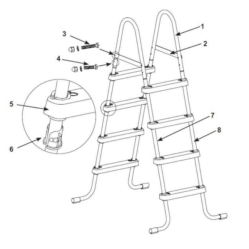 Escalera de seguridad intex fabricada en acero, para piscinas elevadas de hasta 107 cm.