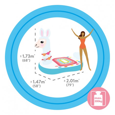 Colchoneta Llama con medidas 147x201x173 cm (ancho x largo x alto) y peso máximo soportado de 200 Kg