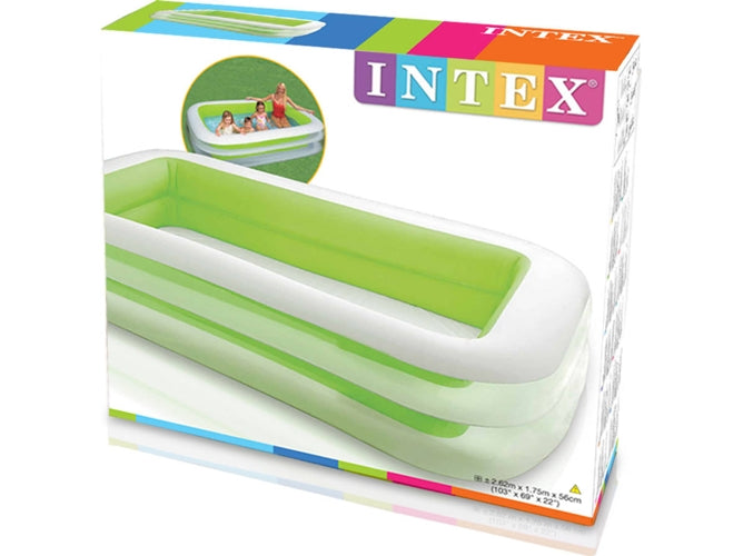 Con la alberca inflable  INTEX® de la línea Swim Center llenas tu hogar de alegría y a la vez  les das a los más pequeños un lugar ideal para divertirse y relajarse. La alberca tiene forma rectangular con esquinas contorneadas. Además, las paredes exteriores están formadas por tres aros transparentes para darle un estilo más moderno y exclusivo. Cuenta con dos cámaras de aire con válvula de fácil inflado y desinflado.