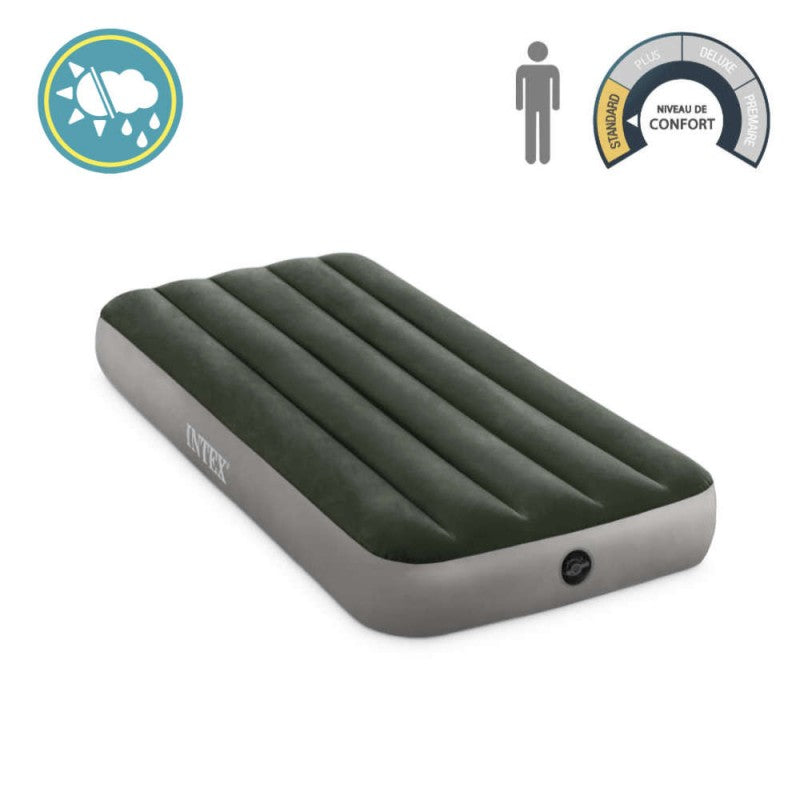 El inflado manual de este colchón INTEX se realiza muy rápidamente. Tiene una gran válvula de apertura que permite el inflado en menos de 3 minutos. Tan rápido de desinflar gracias a su válvula 2 en 1, este colchón inflable satisfará todas sus necesidades. Para facilitarle la vida, existen muchas soluciones de inflación nómada.