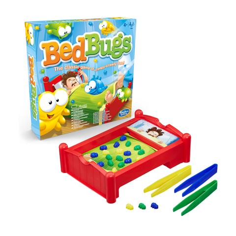 Pulgas en la cama! Presiona el botón para encender la cama y hacer que comience a temblar, luego usa las tenazas para atrapar los bichitos del mismo color lo más rápido posible. Se el primer jugador en atrapar las pulgas del mismo color, y grita ""Pulgas locas"", luego apaga la cama.